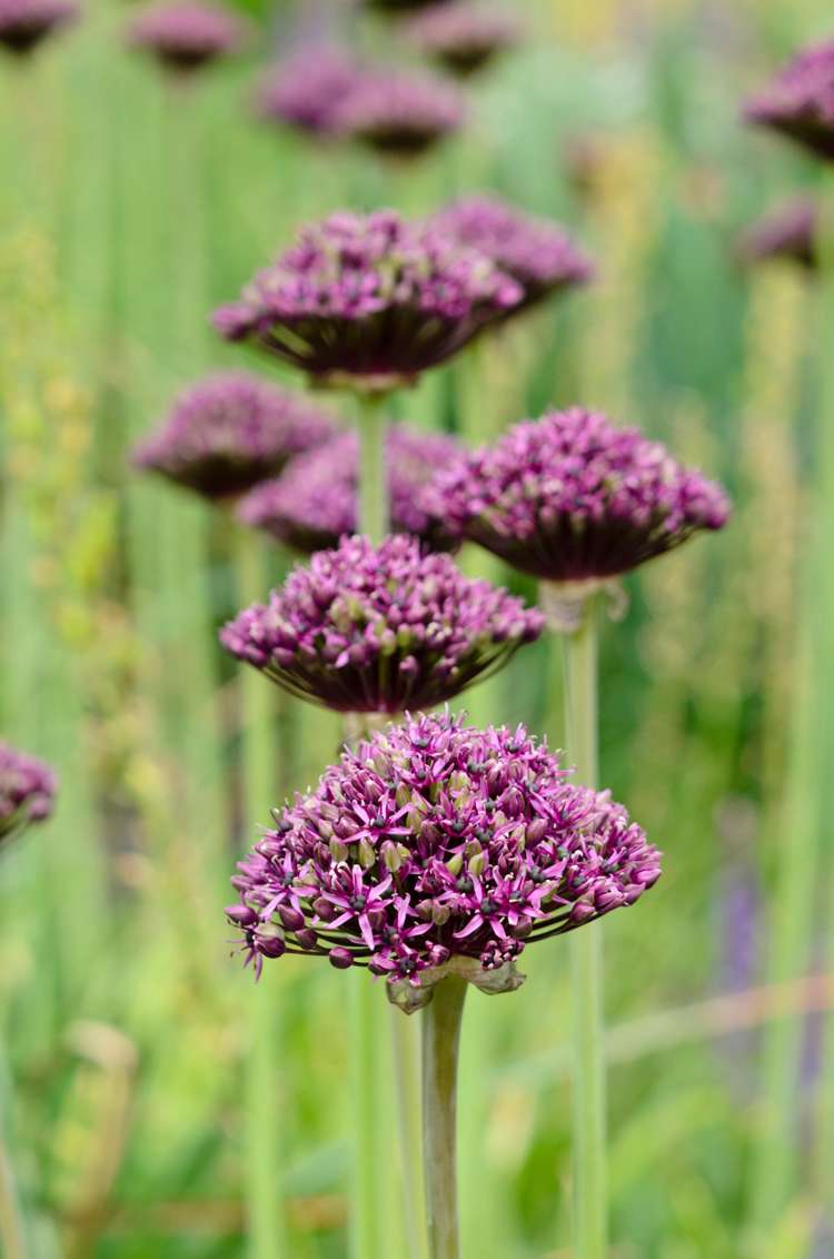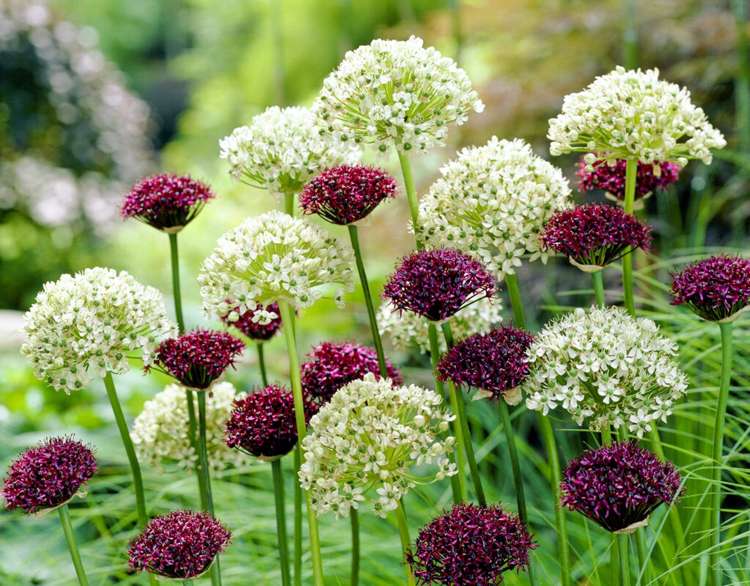 ‘Day & Night’ är en uttrycksfull alliumblandning med stark kontrast mellan mörka och ljusa blommor. Båda sorterna blommar samtidigt i juni och ger höjd, struktur och rytm till rabatten.
