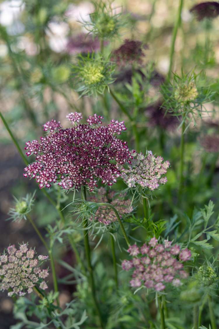 Vildmorot 'Dara' får fina blomhuvuden i nyanser från mjukt vitt till djupt vinrött, vilket ger en elegant, luftig effekt i rabatter och blomsterarrangemang. Den här lättodlade sorten trivs i full sol och väldränerad jord och är idealisk för naturområden, rabatter och snittytor. Dara blommar från sommar till höst och dess unika färgpalett och fina textur gör den perfekt för att ge rörelse och mjukhet till alla landskap eller buketter.