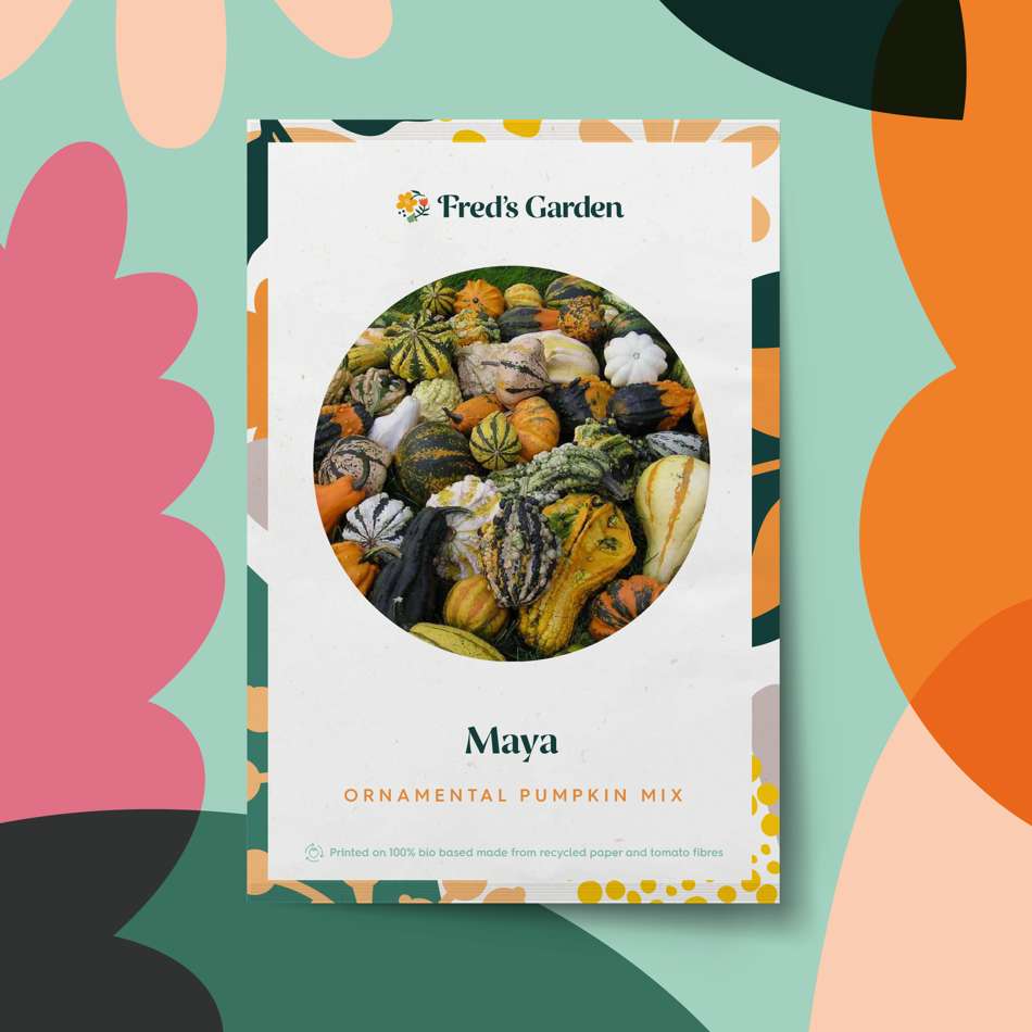 Dekorationspumpa mixen 'Maya Mix' är en livfull selektion av unika former, färger och texturer som gör den perfekt för höstdekorationer och säsongsutställningar. Den är lättodlad och trivs i full sol och väldränerad jord och ger en rad små, färgglada dekorativa pumpor i orange, gula, gröna och krämfärgade nyanser. 'Maya Mix' är perfekt för trädgårdsrabatter eller som marktäckare och ger en fantastisk skörd av dekorativa frukter på hösten.