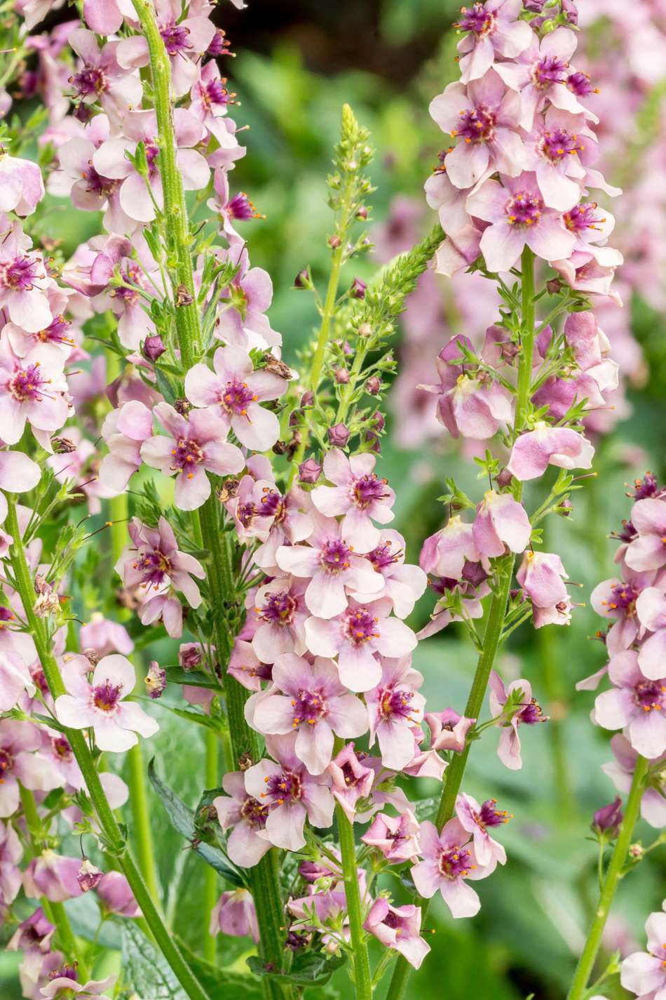 Kungsljus 'Southern Charm' har eleganta blomställningar i en blandning av mjuka nyanser som lavendel, persika och grädde, var och en med ett delikat lila öga. Den blommar från tidig sommar till höst, lockar till sig pollinatörer och är tålig mot torka, vilket gör den till ett lättskött val för stug- och vildmarksträdgårdar.