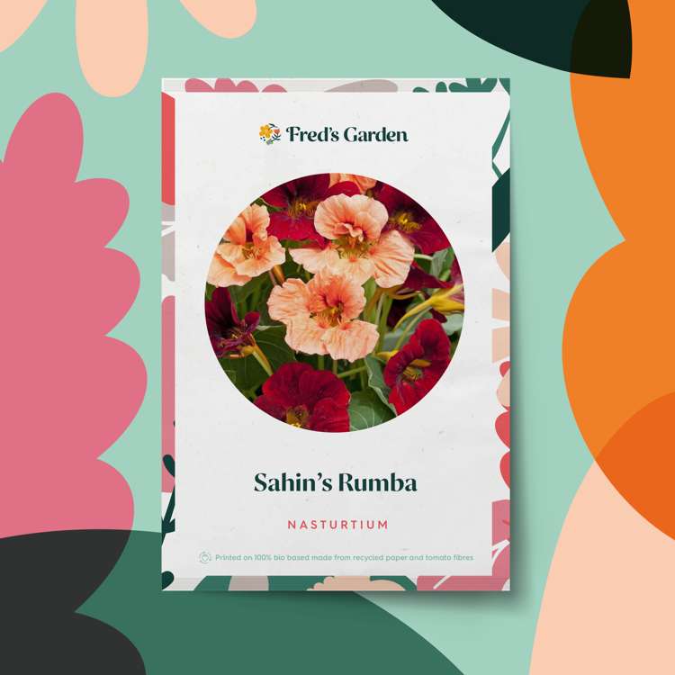 Krasse 'Sahin's Rumba' bländar med livfulla, mångfärgade blommor i eldiga nyanser av rött, orange och gult, vilket skapar en livlig dekoration i rabatter, rabatter och krukor. Denna kraftiga, hängande sort trivs i full sol till halvskugga och väldränerad jord och blommar kontinuerligt från sen vår till höst. Den är perfekt för pollinatörsträdgårdar och dess fantastiska ätbara blommor ger en färgklick till sallader och kulinariska rätter, vilket gör den lika praktisk som den är vacker.