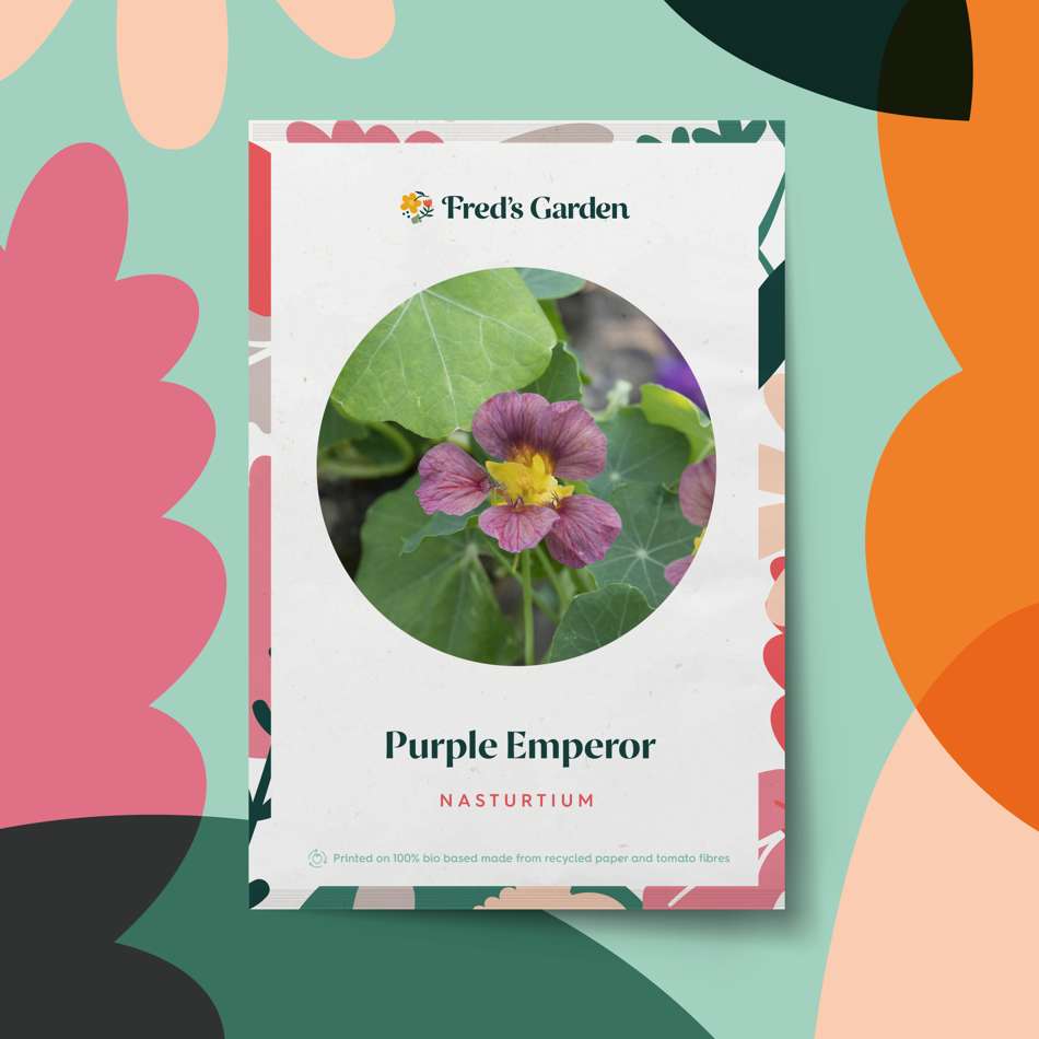 Slingerkrasse 'Purple Emperor' har fantastiska djuplila blommor med en sammetslen textur som ger elegans till trädgårdsrabatter, rabatter och krukor. Denna lättodlade sort trivs i full sol till halvskugga och i väldränerad jord och blommar från sommar till höst. Den är idealisk för pollinatörsträdgårdar och dess unika ätbara blommor är ett slående tillskott till sallader och matlagning.