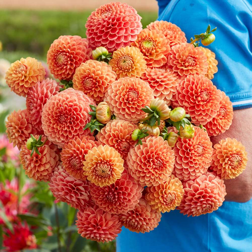 Dahlia 'Beatrice' är en välformad, fin persiko-orangefärgad dahlia med god hållbarhet och varma, lysande blommor.