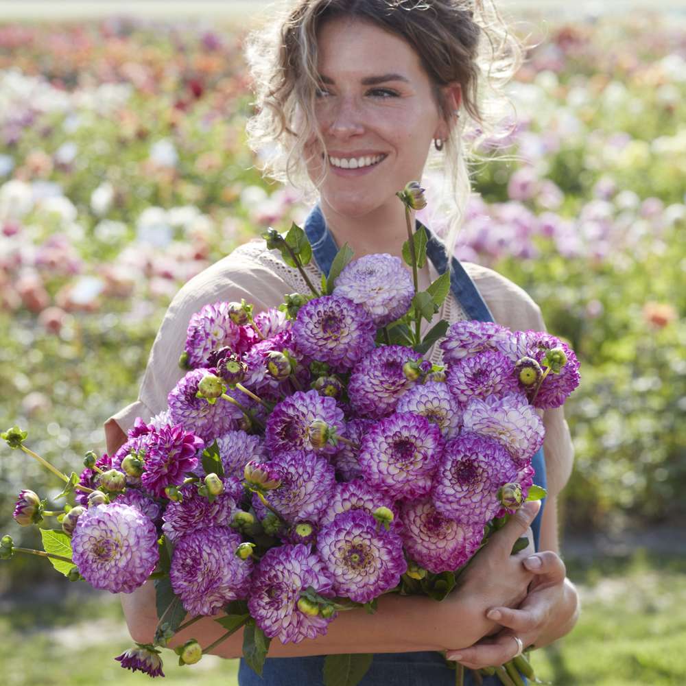 'Dreaming Maid' är en dahliadröm som pryder varje trädgård med sina otroligt vackra tvåfärgade blommor. Blomman börjar med violetta kronblad och en subtil vit mitt som långsamt blir mer dominerande. 'Dreaming Maid' är av dahliaboll-typ och blommar från juni till november.