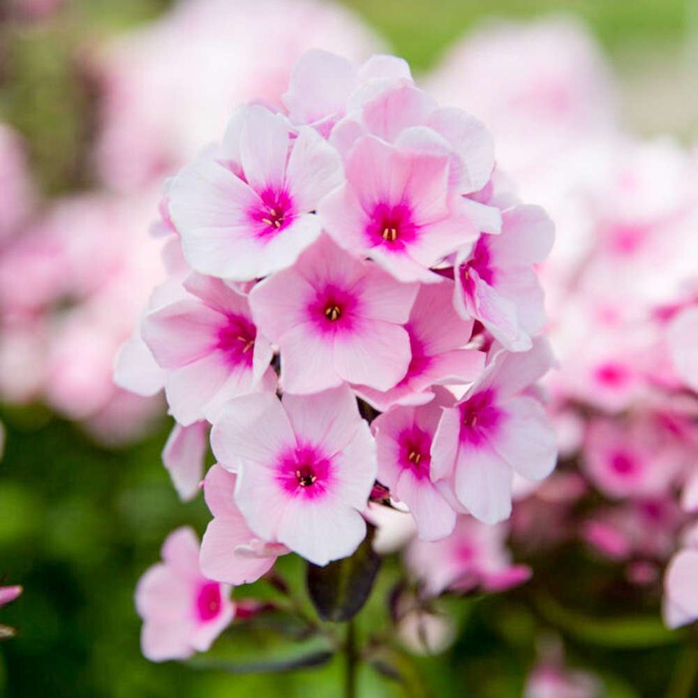 Höstflox 'Bright Eyes' är en graciös och livlig perenn med mjuka, ljusrosa blommor som pryds av en tydligt mörkare mitt som skapar en vacker kontrast. De täta blomklasarna blommar från midsommar till tidig höst och ger trädgården ett romantiskt och charmigt utseende. 'Bright Eyes' trivs bäst i full sol och näringsrik, väldränerad jord och är känd för att locka till sig bin och fjärilar med sina nektarrika blommor. Den här sorten är idealisk för rabatter, kantplanteringar och tillför elegans och värme till alla planteringar.