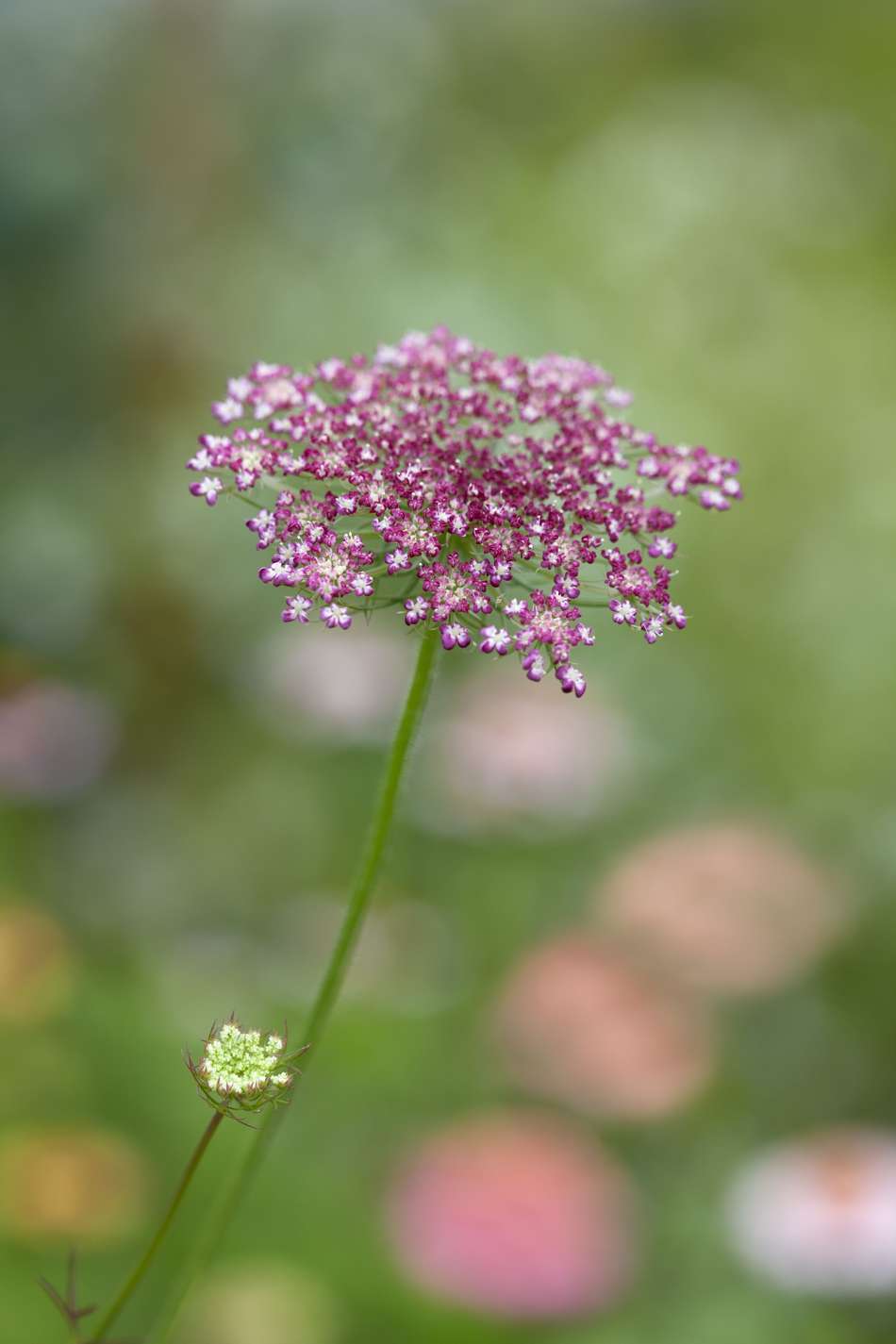 Vildmorot 'Dara' får fina blomhuvuden i nyanser från mjukt vitt till djupt vinrött, vilket ger en elegant, luftig effekt i rabatter och blomsterarrangemang. Den här lättodlade sorten trivs i full sol och väldränerad jord och är idealisk för naturområden, rabatter och snittytor. Dara blommar från sommar till höst och dess unika färgpalett och fina textur gör den perfekt för att ge rörelse och mjukhet till alla landskap eller buketter.