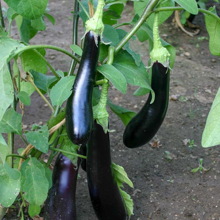 Aubergine 'Violetta Lunga 3' är en italiensk ärftlig sort som är känd för sina smala, djuplila frukter och sitt mjuka, smakrika fruktkött. Denna produktiva växt trivs i full sol och väldränerad jord och är idealisk för både trädgårdsbäddar och krukor i växthuset. De långsträckta frukterna är perfekta att grilla, rosta och lägga till i medelhavsrätter med en mild smak och krämig konsistens när de tillagas.