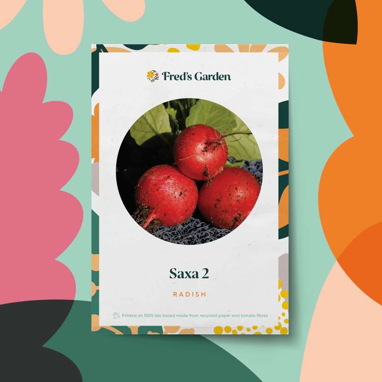 Rädisa 'Saxa 2' är en tidigmognande sort som uppskattas för sina runda, klarröda rötter och sin krispiga, saftiga konsistens. Denna snabbväxande rädisa trivs i full sol och väldränerad jord och är perfekt för vår- och höstplantering, med en snabb skörd på bara tre veckor. 'Saxa 2' har en mild, lätt pepprig smak och är perfekt för sallader, garnering eller att äta färsk.