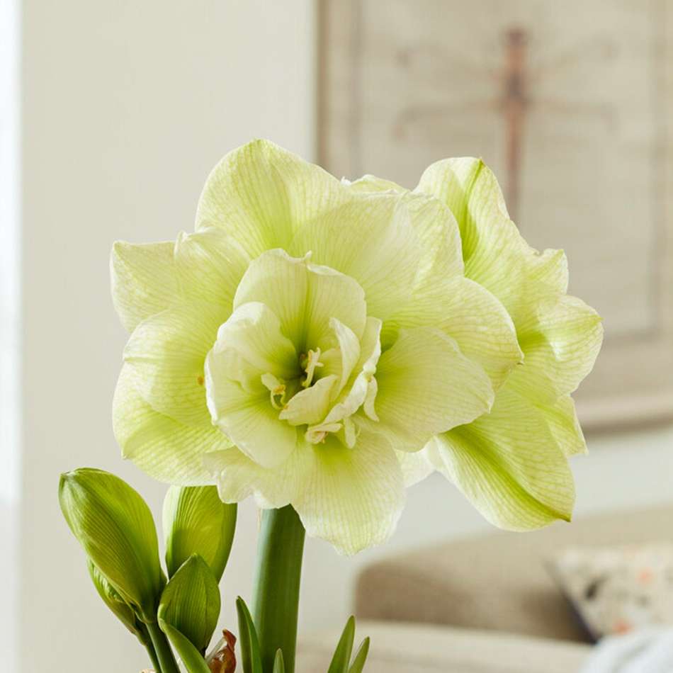 'Marilyn' lyser upp fönsterbrädan under de kalla månaderna. Växten blir cirka 40 cm hög och sätter vanligtvis två kraftiga blomstänglar med 3–4 stora blommor på varje, och från plantering till blomning tar det som regel 6–8 veckor. Ju större lök, desto större är chansen till fler blomstänglar och en ännu rikare blomning.