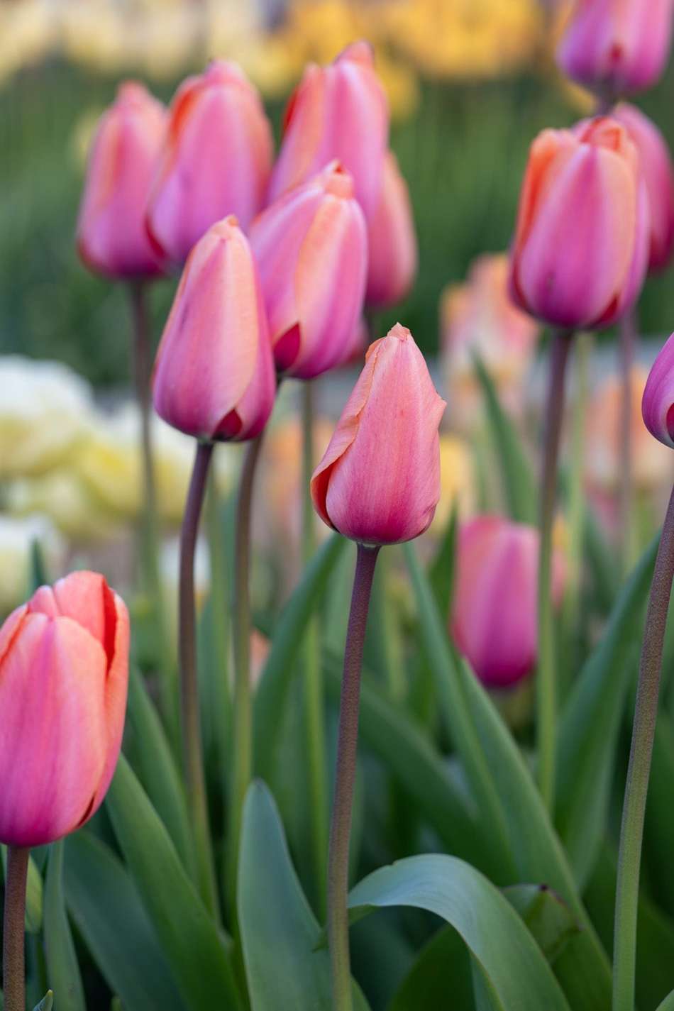 Tulpanen 'Apricot Impression' är en imponerande Darwin-hybrid med stora, klassiskt formade blommor som öppnar sig i mjuka aprikosrosa toner med en diskret gyllene glans längs kronbladen. Färgerna mognar elegant under blomningsperioden, vilket ger sorten ett varmt och livfullt uttryck.