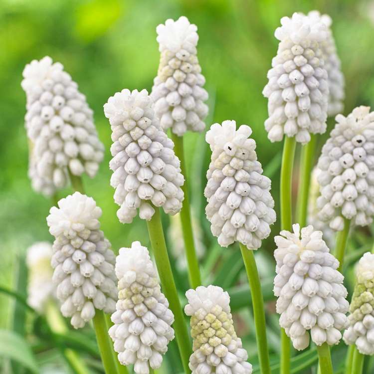 Sorten är robust och återkommer troget år efter år, vilket gör den idealisk som marktäckare, kantväxt, i krukor eller som ett skirt täcke under buskar och träd. En enkel men uttrycksfull pärlhyacint som tillför trädgården renhet, lugn och klassisk elegans.