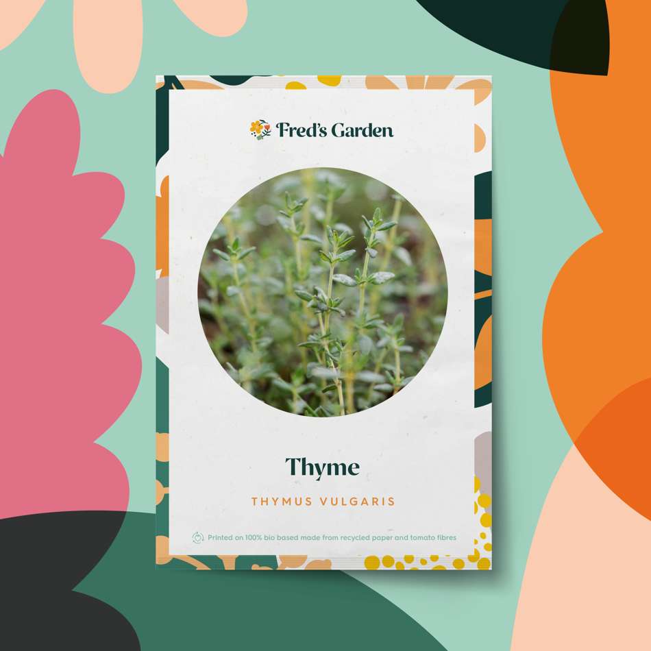 Timjan är en mångsidig, aromatisk ört som uppskattas för sina små, doftande blad och träiga stjälkar. Denna torktåliga perenn trivs i full sol och väldränerad jord och är idealisk för trädgårdsbäddar, rabatter eller krukor. Timjanens jordiga, lätt myntaktiga smak gör den till en stapelvara i soppor, grytor och marinader, medan dess små, lavendelfärgade blommor lockar pollinatörer till trädgården. Timjan är lätt att odla och underhålla och är ett måste i alla örtagårdar.