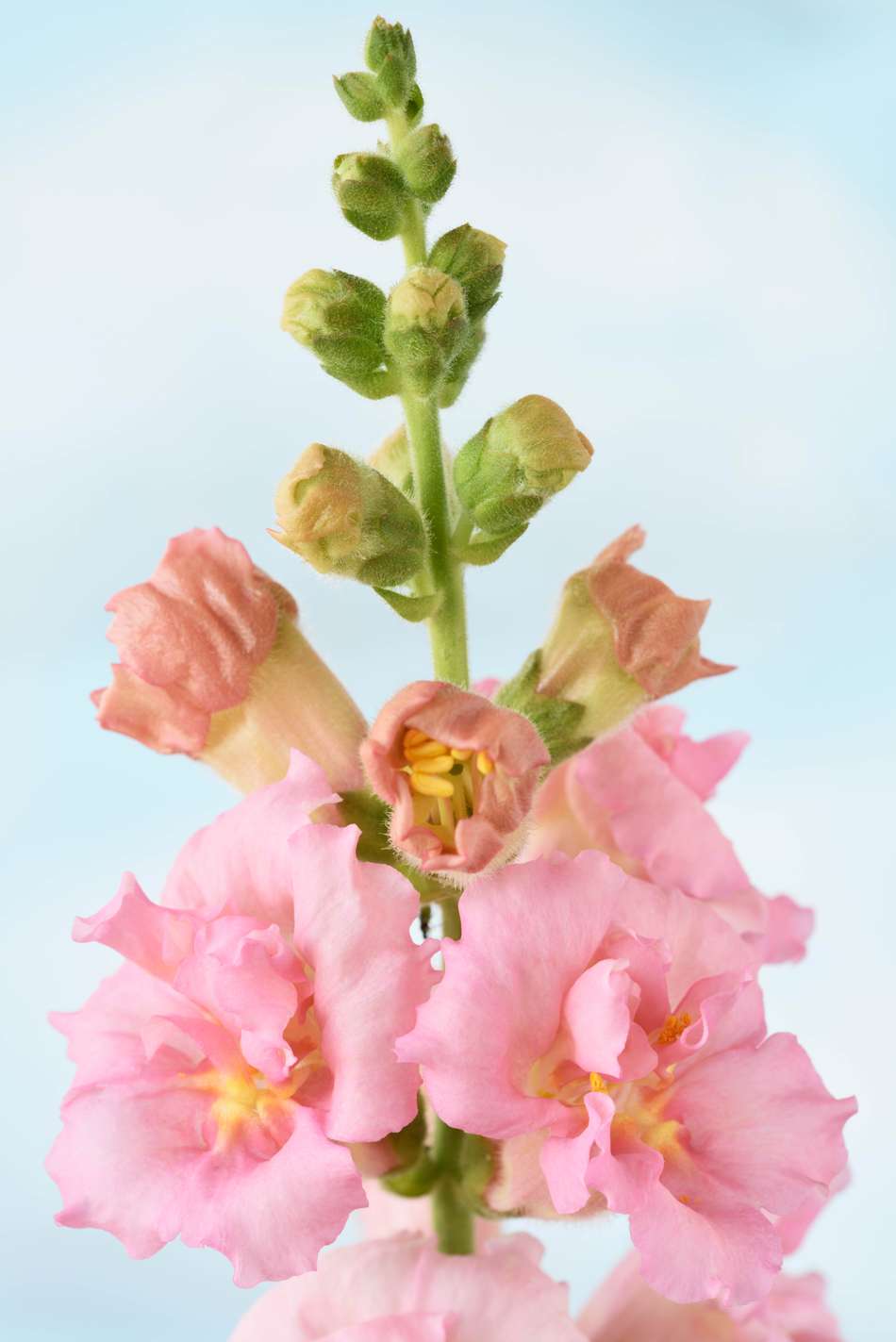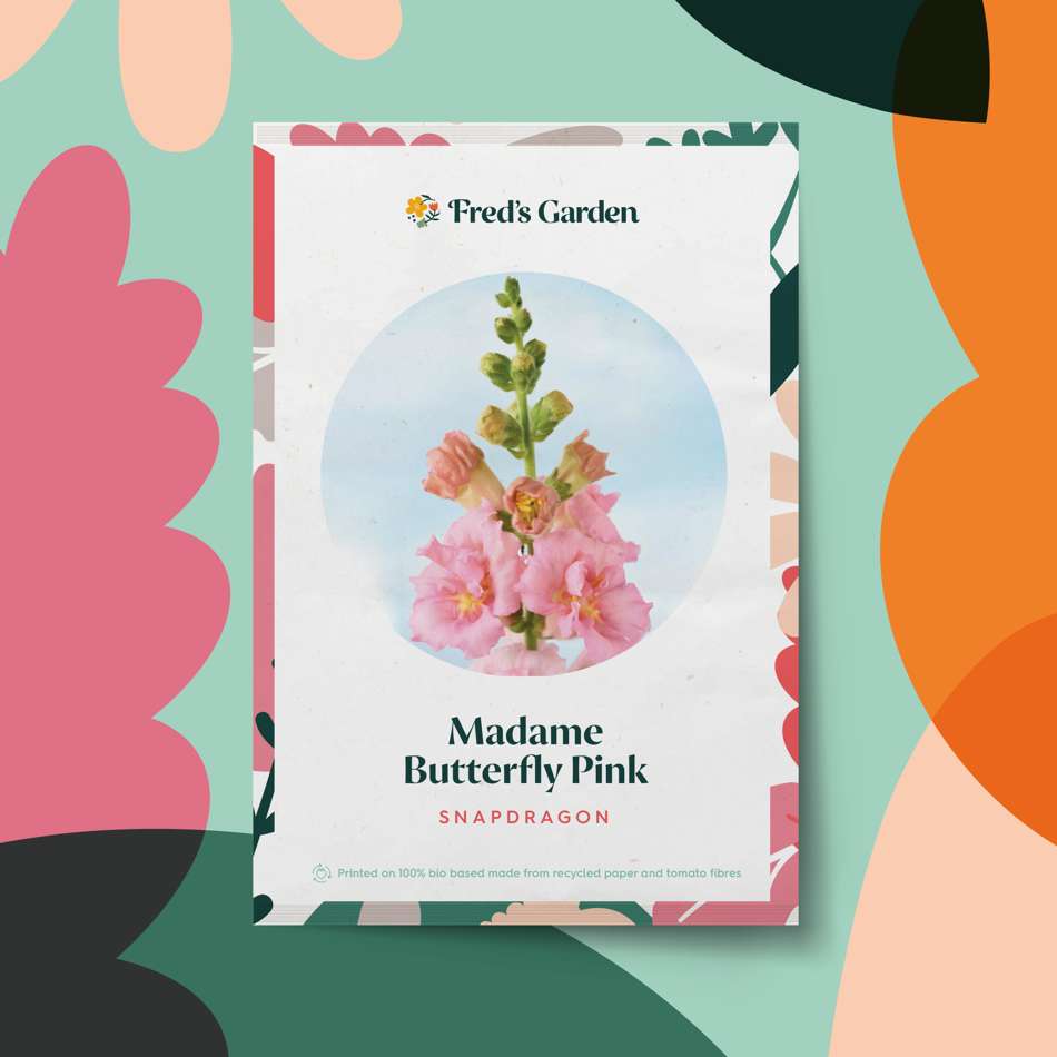 Vacker lejongap från den älskade Madame Butterfly-serien i ljusrosa nyanser med gul mitt. Lejongap behöver ljus för att gro, så fröna ska sås på ytan och inte täckas med jord. Växten ger många blommor till trädgården och ju fler du plockar, desto fler blir det. Den är också en utmärkt snittblomma till sommarens buketter.