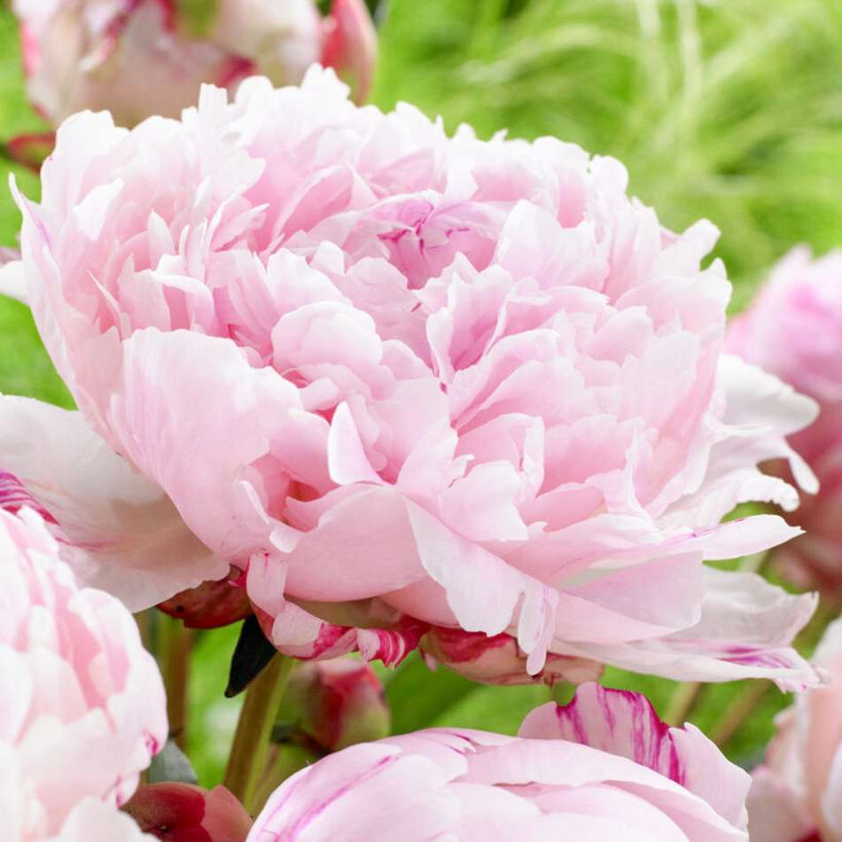 Pionen 'Sarah Bernhardt' är en ikonisk och älskad sort som får stora, fylliga blommor i en mjukt rosa färg. De silkeslena kronbladen och blommans lätt söta, förföriska doft gör den till en favorit bland pionälskare. Denna prisbelönta sort blommar under sen vår till tidig sommar och trivs bäst i full sol och väldränerad jord. 'Sarah Bernhardt' är perfekt för rabatter och som snittblomma och ger elegans och romantik till alla trädgårdar och buketter.