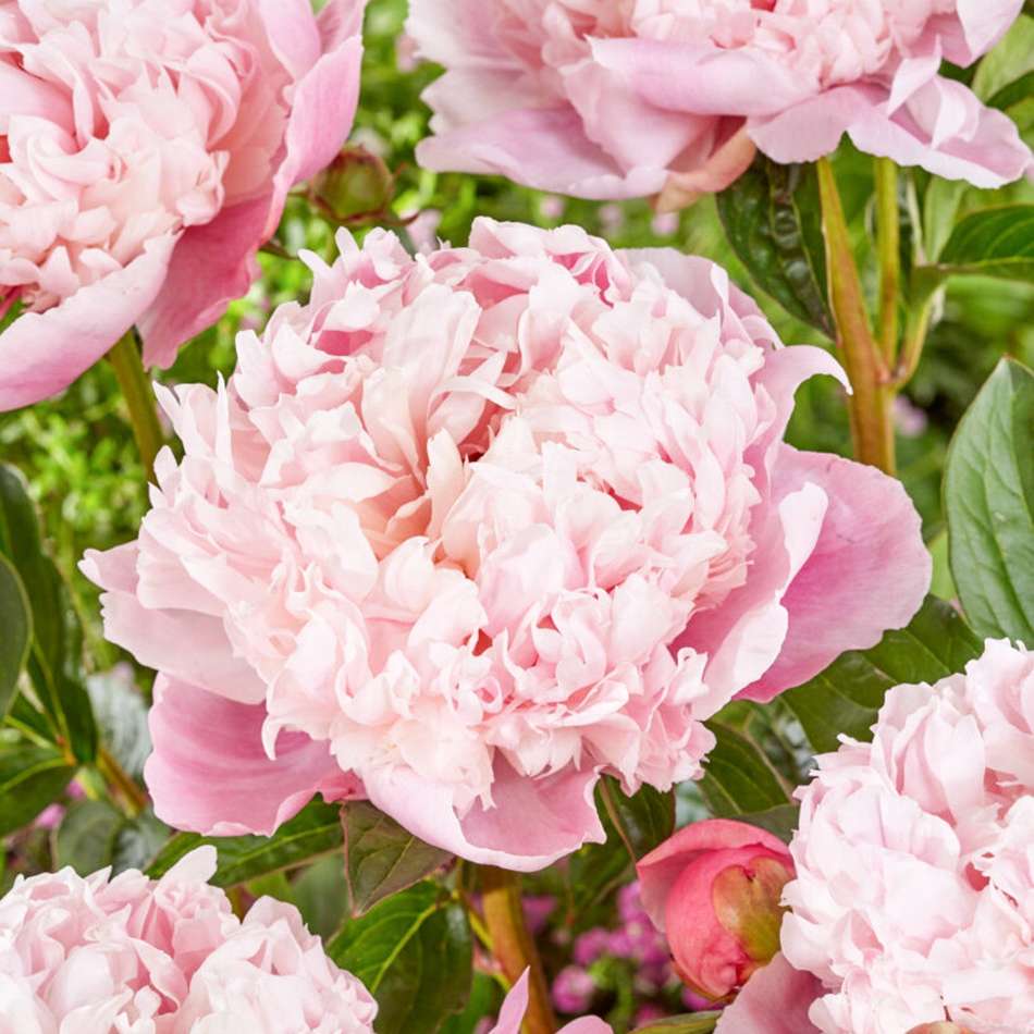 Pionen 'Shirley Temple' är en elegant och romantisk sort som är känd för sina stora, fyllda blommor som öppnar sig i en mjuk rosa nyans och gradvis bleknar till rent vitt med bara en antydan till rosa på kronbladens yttre del. 'Shirley Temple' blommar under sen vår till tidig sommar och trivs bäst i full sol och väldränerad jord.