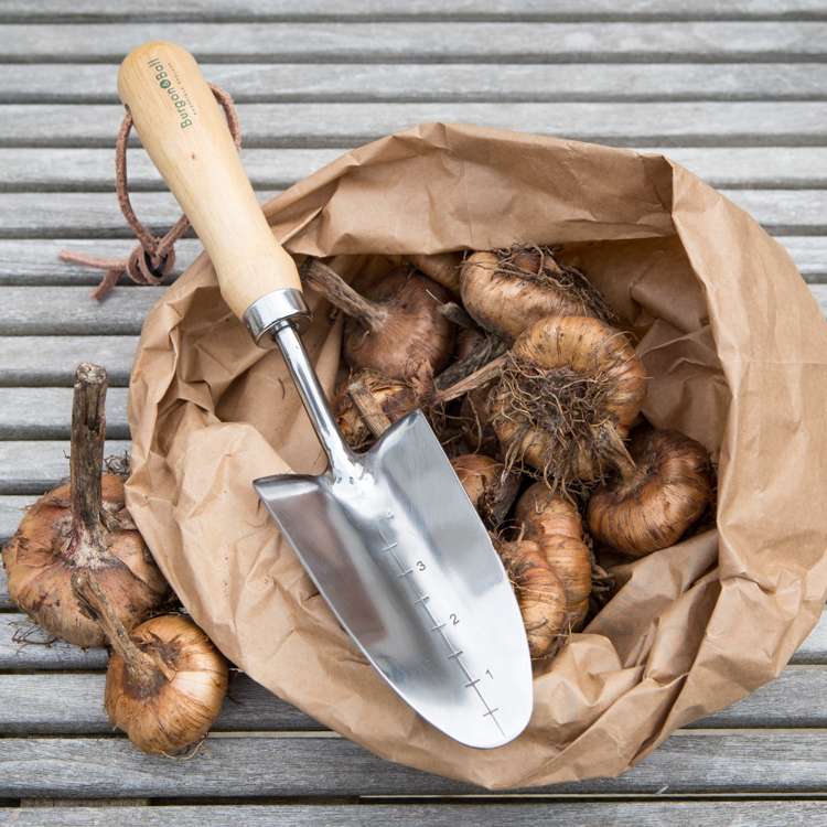Vår slanka Planteringsspade i rostfritt stål är RHS-godkänd, ett av trädgårdsvärldens mest respekterade kvalitetsmärken. Den smalare formen än en klassisk handspade gör den idealisk bland täta planteringar. På bladet finns ingraverade djupmarkeringar i tum, så du kan plantera exakt på rätt djup – särskilt praktiskt för lökar.