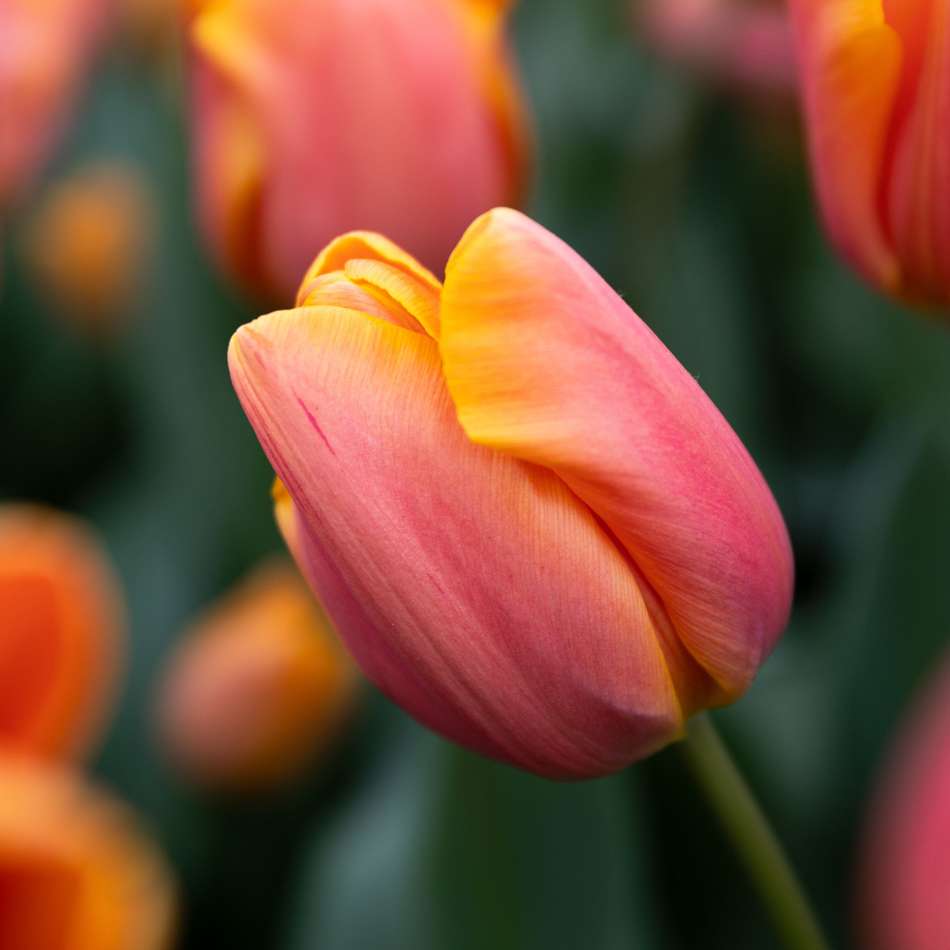 Tulpanen 'Jimmy' är en livfull och energisk Triumph-tulpan som tillför en explosion av färg till vårträdgården. Dess blommor öppnar sig i en varm aprikosorange nyans, överströdd med korallröda toner och gyllene kanter, vilket skapar ett dynamiskt och iögonfallande uttryck. Det varierande färgspelet ger varje blomma en unik karaktär som fångar blicken och tillför djup till planteringen.