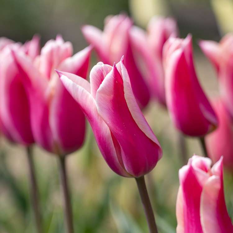 Tulpan 'Sanne' är en elegant och väldoftande Triumph-tulpan som tillför en romantisk och föränderlig färgpalett till vårträdgården. Den blommar i april–maj med stora, spetsiga blommor som öppnar sig i en djup rosa nyans med gräddfärgade kanter och mognar gradvis till ljusrosa med elfenbensvita kanter, för att slutligen bli nästan helt gräddfärgad.