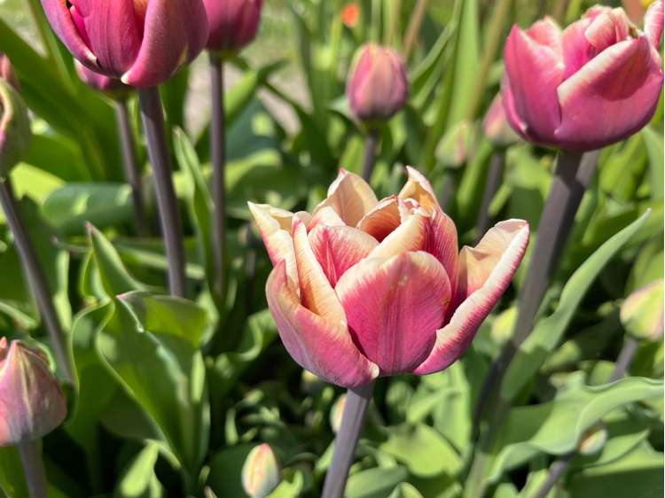 Tulpan 'Wyndham' är en förtrollande variant bland dubbelblommande tulpaner som tillför vårträdgården en känsla av vintage-elegans. Dess stora, fyllda blommor öppnar i djupa bordeauxröda nyanser med crèmefärgade kanter och utvecklas gradvis till antikt bruntonade nyanser med beige, vilket skapar ett levande färgspel som fångar blicken och tillför en dramatisk effekt till både rabatt och bukett.