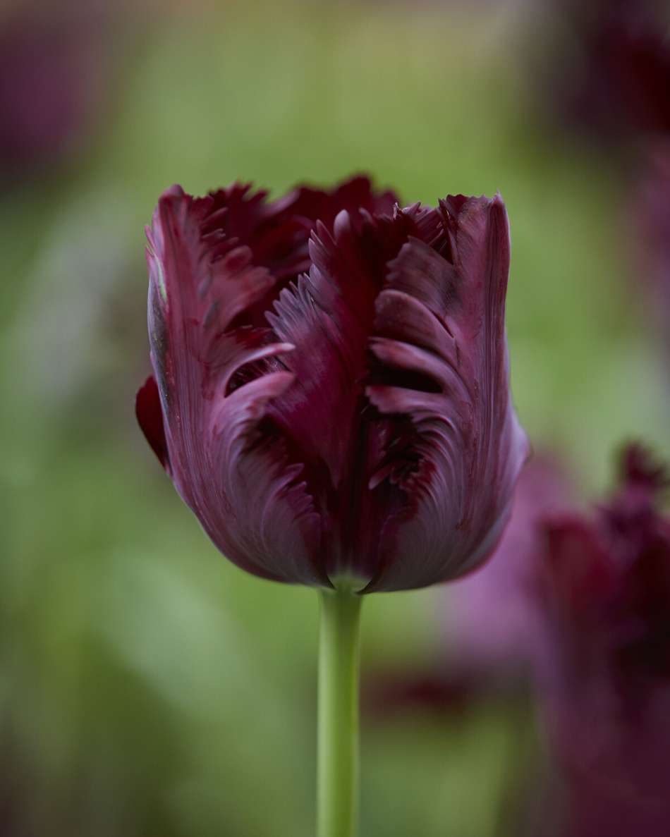 Tulpanen 'Black Parrot' ger din trädgård ett dramatiskt inslag. Denna papegojtulpan är känd för sina stora, djupt bordeauxröda, nästan svarta blommor med fjäderlika kronblad. Den unika strukturen på kronbladen skapar ett spännande visuellt uttryck som garanterat väcker uppmärksamhet och glädje i trädgården.