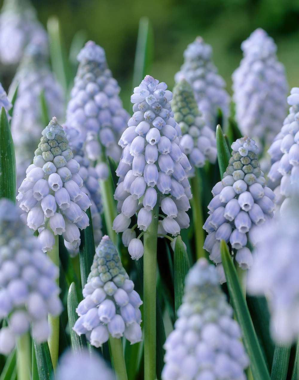 Denna pärlhyacint naturaliserar sig lätt och återkommer troget år efter år, vilket gör den till ett idealiskt val för trädgårdsälskare som vill tillföra en mjuk och varaktig elegans till vårens blomsterbäddar.